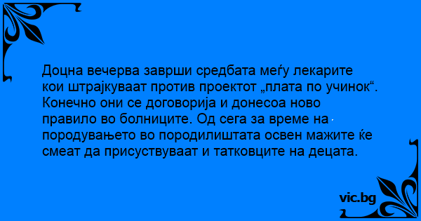 Конечно они се договорија и донесоа ново правило во болниците. Од сега за време на породувањето во породилиштата освен мажите ќе смеат да присуствуваат и татковците на децата.