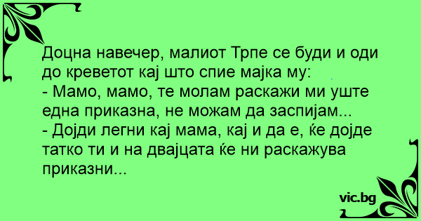 - Мамо, мамо, те молам раскажи ми уште една приказна, не можам да заспијам...