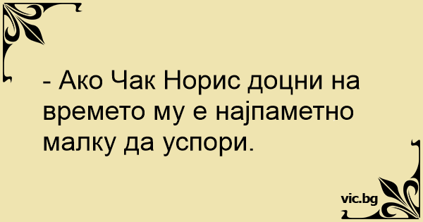 - Ако Чак Норис доцни на времето му е најпаметно малку да успори.