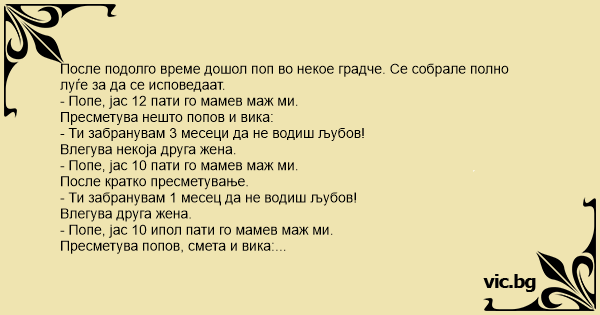 Пресметува нешто попов и вика: