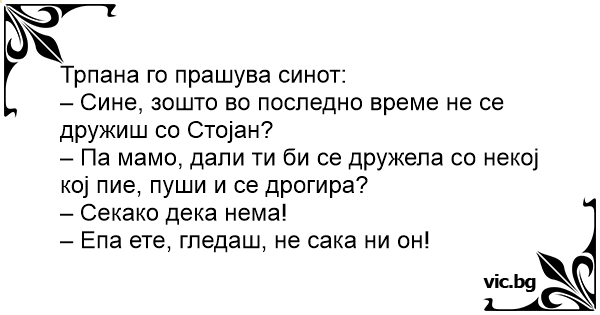 – Сине, зошто во последно време не се дружиш со Стојан?