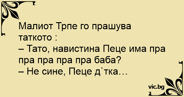 – Тато, навистина Пеце има пра пра пра пра пра баба?