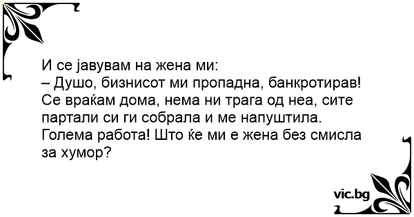 Голема работа! Што ќе ми е жена без смисла за хумор?