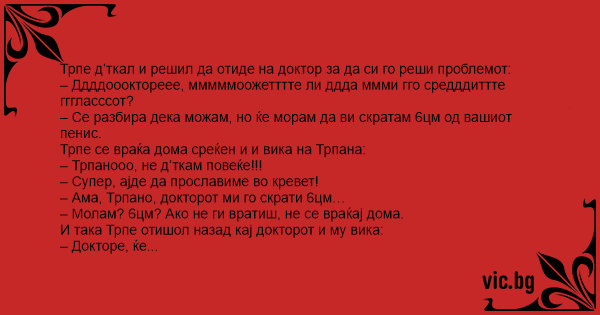 И така Трпе отишол назад кај докторот и му вика: