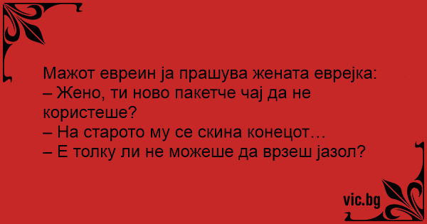 Мажот евреин ја прашува жената еврејка: