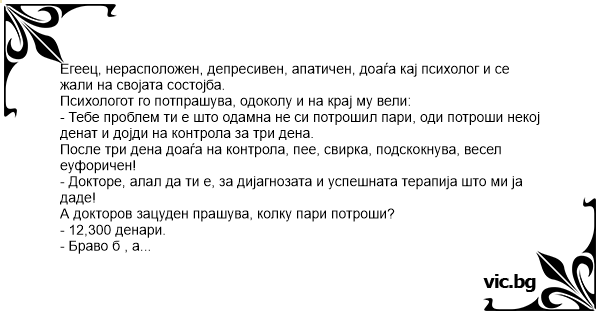 - Докторе, алал да ти е, за дијагнозата и успешната терапија што ми ја даде!