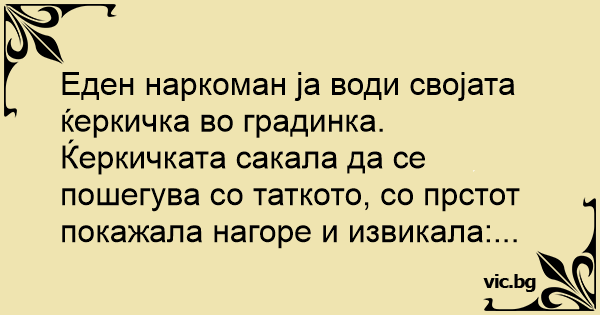Ќеркичката сакала да се пошегува со таткото, со прстот покажала нагоре и извикала:...