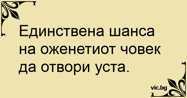 Единствена шанса на оженетиот човек да отвори уста.