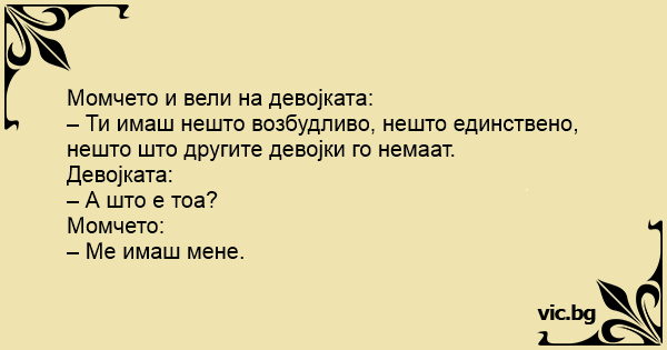 – Ти имаш нешто возбудливо, нешто единствено, нешто што другите девојки го немаат.