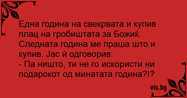 Една година на свекрвата и купив плац на гробиштата за Божиќ.