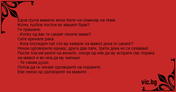 После тоа им рекле на жените, секоја од нив да му испрати смс порака на мажот и во неа да му напише: