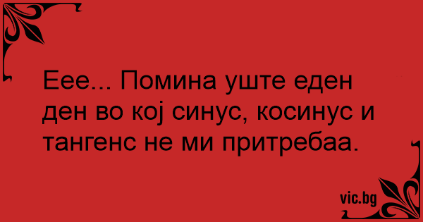 Еее... Помина уште еден ден во кој синус, косинус и тангенс не ми притребаа.