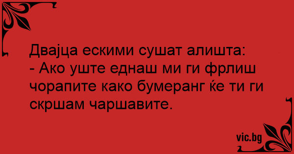 - Ако уште еднаш ми ги фрлиш чорапите како бумеранг ќе ти ги скршам чаршавите.
