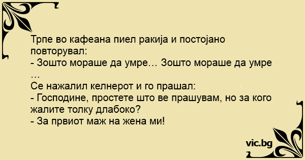 Трпе во кафеана пиел ракија и постојано повторувал:
