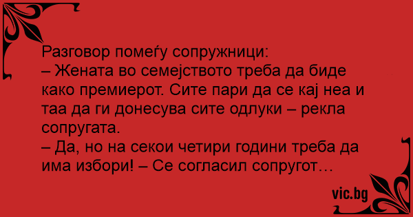 – Да, но на секои четири години треба да има избори! – Се согласил сопругот…