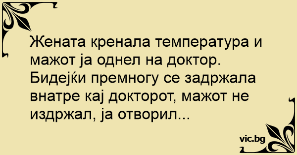 Бидејќи премногу се задржала внатре кај докторот, мажот не издржал, ја отворил...