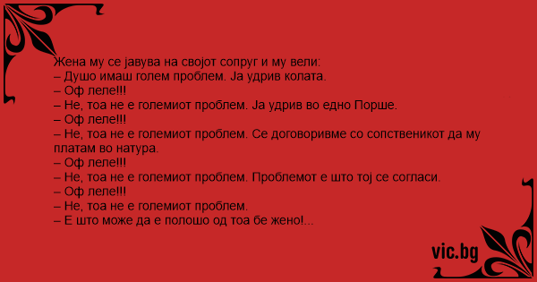 – Не, тоа не е големиот проблем. Ја удрив во едно Порше.