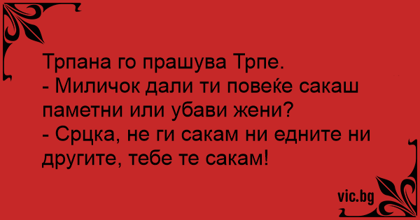 - Милооо, ти какви жени обичаш? Умни или красиви?