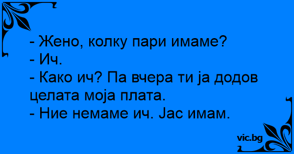 - Како ич? Па вчера ти jа додов целата моjа плата.
