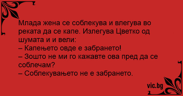 Млада жена се соблекува и влегува во реката да се капе. Излегува Цветко од шумата и и вели: