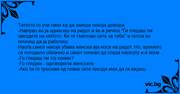 -Најпрво ќе ја однесеш на ридот и ќе и речеш "Ги гледаш ли ѕвездите на небото. Ќе ги сметнам сите за тебе" и потоа ќе почнеш да ја работиш.