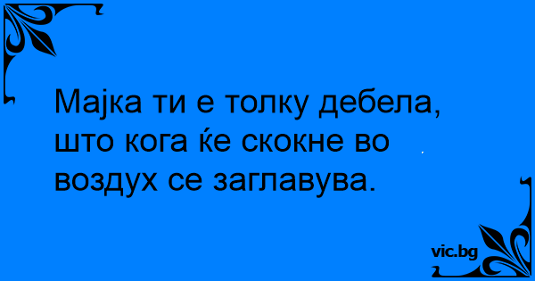Мајка ти е толку дебела, што кога ќе скокне во воздух се заглавува.