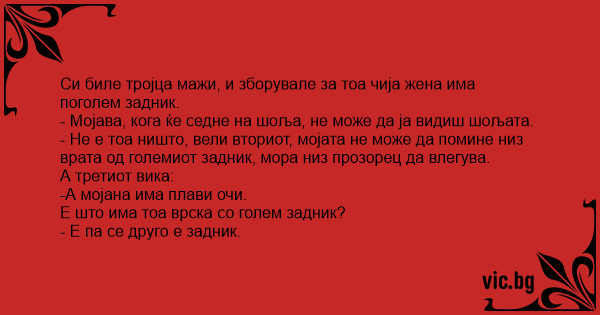 Си биле тројца мажи, и зборувале за тоа чија жена има поголем зaдниk.