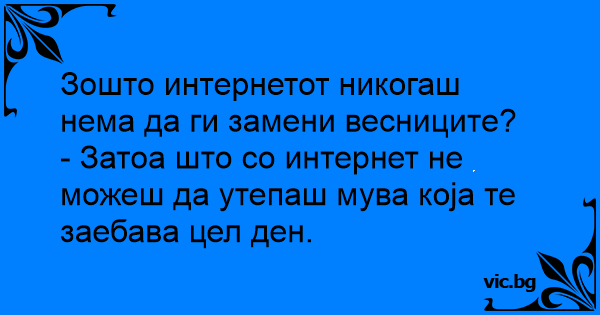 - Затоа што со интернет не можеш да утепаш мува која те заебава цел ден.