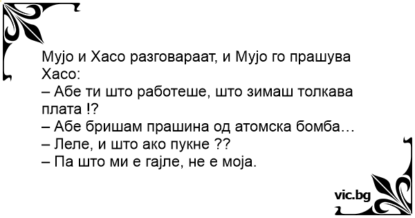 Мујо и Хасо разговараат, и Мујо го прашува Хасо:
