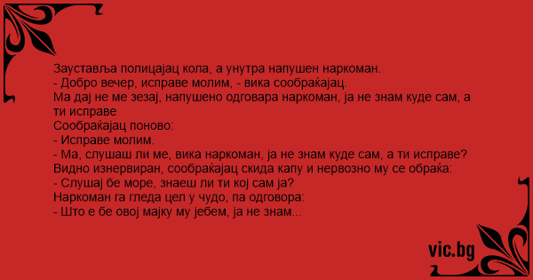 - Ма, слушаш ли ме, вика наркоман, ја не знам куде сам, а ти исправе?