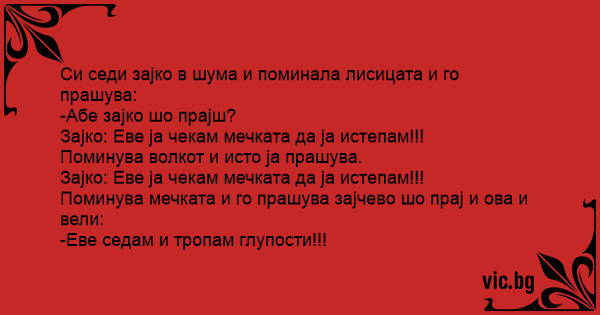 Си седи зајко в шума и поминала лисицата и го прашува:
