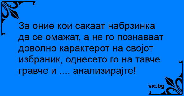 За оние кои сакаат набрзинка да се омажат, а не го познаваат доволно карактерот на својот избраник, однесето го на тавче гравче и .... анализирајте!