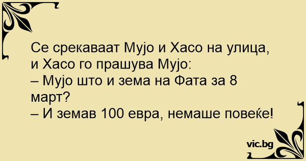 – Мујо што и зема на Фата за 8 март?