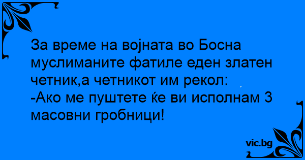 За време на војната во Босна муслиманите фатиле еден златен четник,а четникот им рекол: