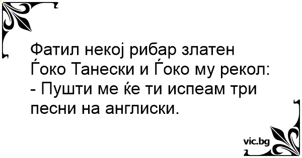 Фатил некој рибар златен Ѓоко Танески и Ѓоко му рекол: