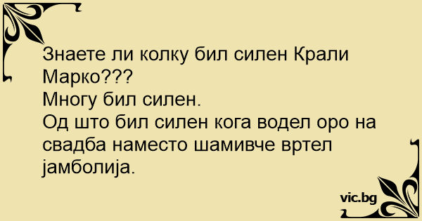 Од што бил силен кога водел оро на свадба наместо шамивче вртел јамболија.