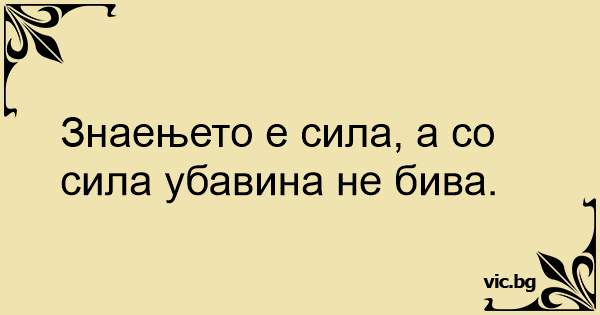 Знаењето е сила, а со сила убавина не бива.