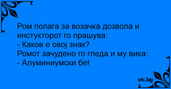 Ром полага за возачка дозвола и инстукторот го прашува: