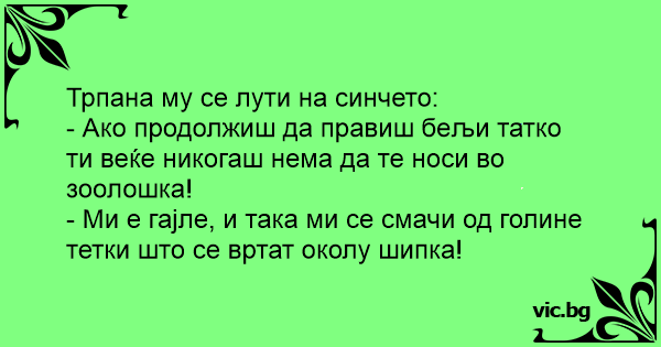- Ако продолжиш да правиш бељи татко ти веќе никогаш нема да те носи во зоолошка!