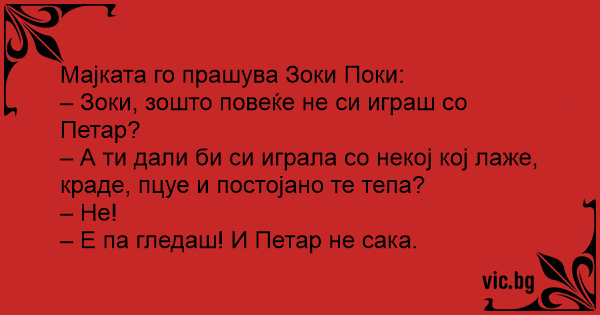 – Зоки, зошто повеќе не си играш со Петар?