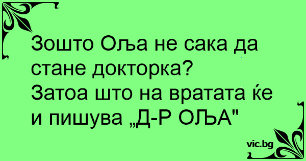 Затоа што на вратата ќе и пишува „Д-Р ОЉА"