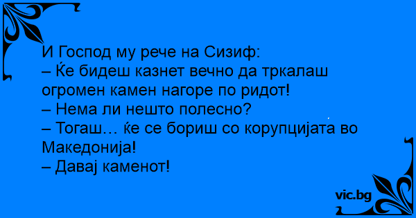 – Ќе бидеш казнет вечно да тркалаш огромен камен нагоре по ридот!