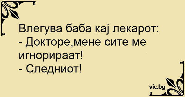 Przychodzi baba do lekarza i mówi: - Panie doktorze wszyscy mnie ignorują. - Następny prosze.