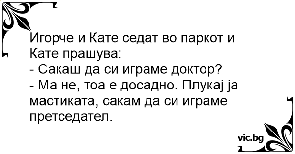 Игорче и Кате седат во паркот и Кате прашува: