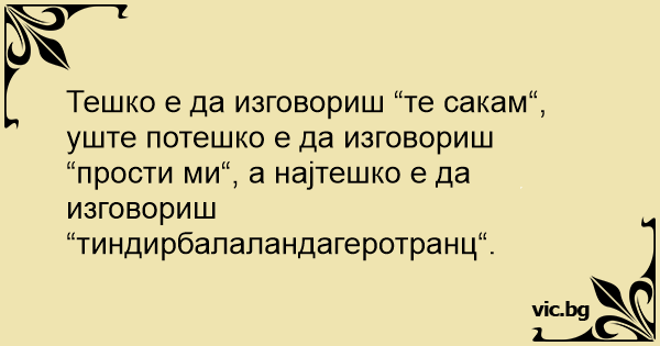 Тешко е да изговориш “те сакам“, уште потешко е да изговориш “прости ми“, а најтешко е да изговориш “тиндирбалаландагеротранц“.