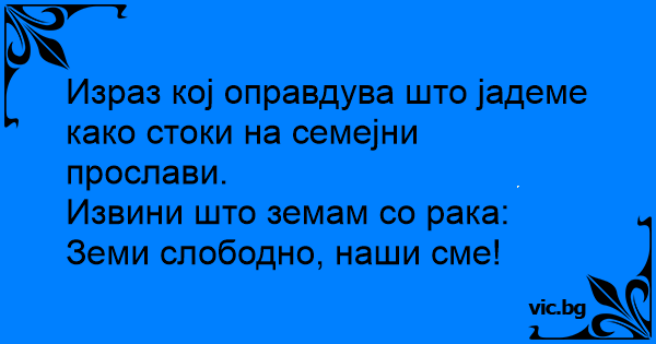 Израз кој оправдува што јадеме како стоки на семејни прослави.
