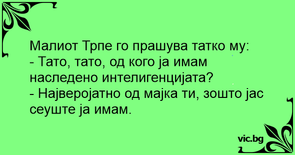 - Тато, тато, од кого ја имам наследено интелигенцијата?