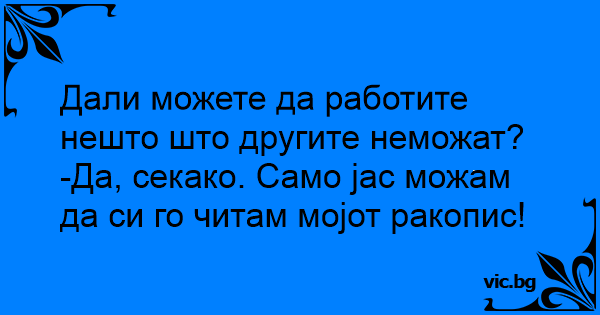 -Да, секако. Само јас можам да си го читам мојот ракопис!