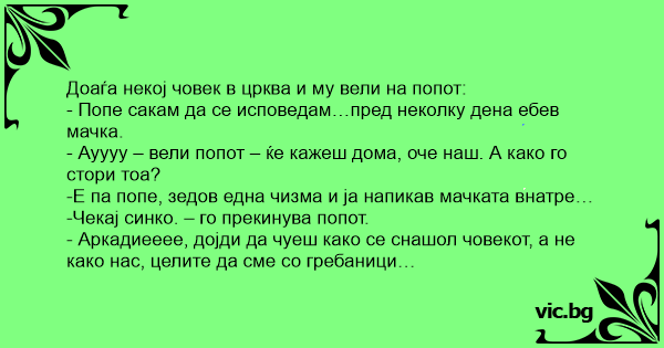 - Попе сакам да се исповедам…пред неколку дена ебев мачка.