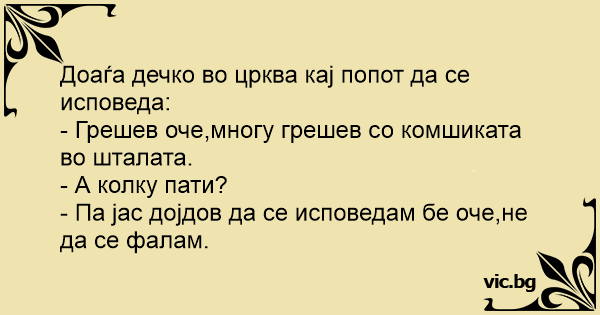Доаѓа дечко во црква кај попот да се исповеда: